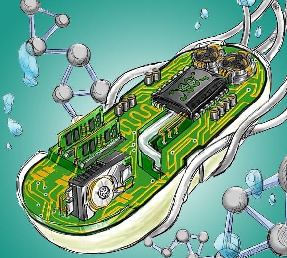 Mitochondria = redox oscillators + proton current across a membrane → phase-locked → ATP (usable work).